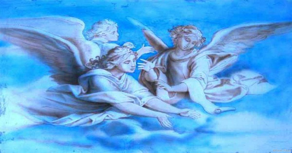 Два ангела, женщина, бегущая на работу, крутая лестница. — Толкай, толкай, говорю! — Лестница такая крутая, насмерть разобьется ведь! — Я подстрахую, только ногу сломает!…