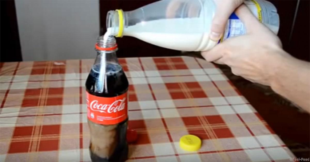 Парень налил в колу немного молока и ненадолго оставил бутылку в покое. Буквально через час с напитком произошли поразительные изменения. Жидкость потеряла свою черноту, приобретя…