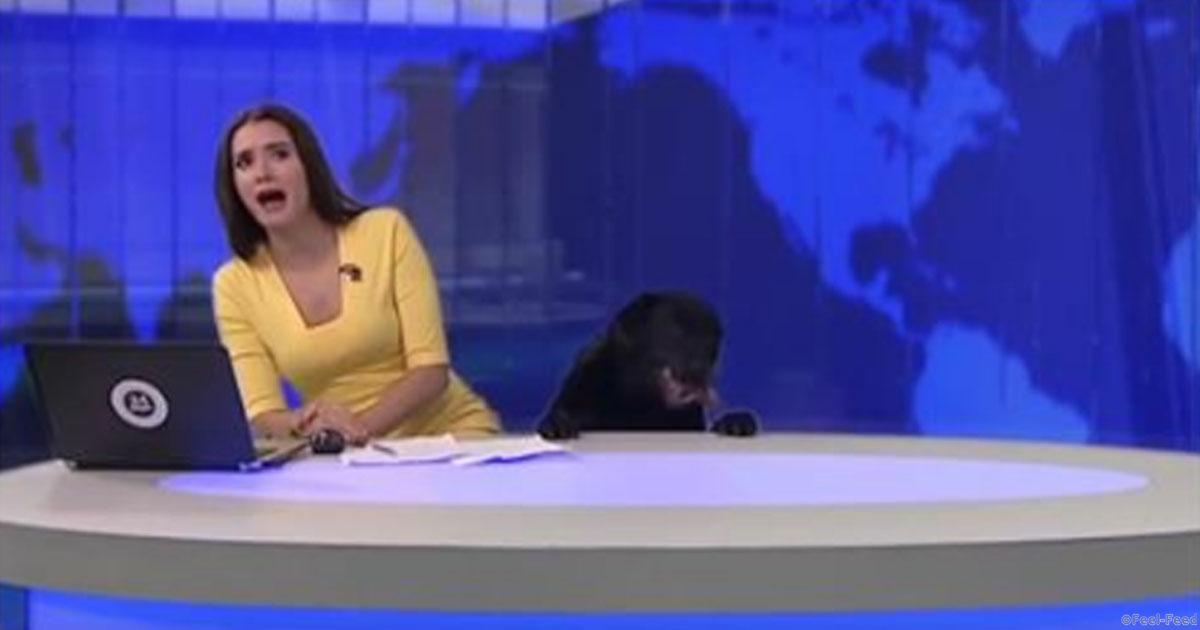 Во время прямого эфира телеканала МИР 24 в студию забежала большая собака и попыталась залезть к ведущей на стол. Девушка хоть и испугалась, но продолжила…