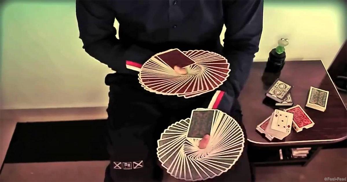 Хорошая ловкость рук, внимательность и достаточно крепкие нервы. В общем крупье 99 уровня. У этого парня действительно все красиво и ловко получается. Интересно сколько лет…