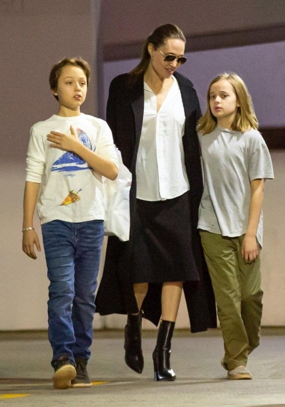 Нокс, который редко попадал в объективы прессы, выглядел заметно повзрослевшим с новой длинной и слегка растрепанной прической. На нем были кроссовки, брюки цвета хаки и белая футболка, поэтому образ получился простым и непринужденным. Хотя, возможно, он и не собирается продолжать актерский путь своих родителей, Нокс нашел для себя другие способы творческого самовыражения.